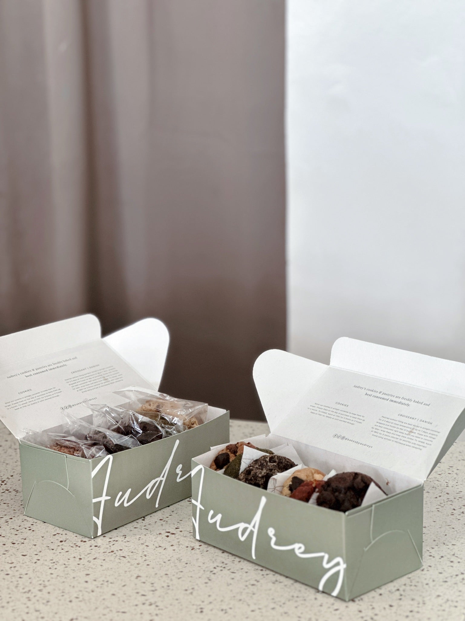 For events and dessert catering, you may pre-order our cookie sampler box to try our best-selling range. We can also schedule an online cake consultation via zoom alongside your order so we can discuss your event plans and other requirements while you taste our samples. Please indicate in your order notes upon checkout if you wish to set an online appointment.