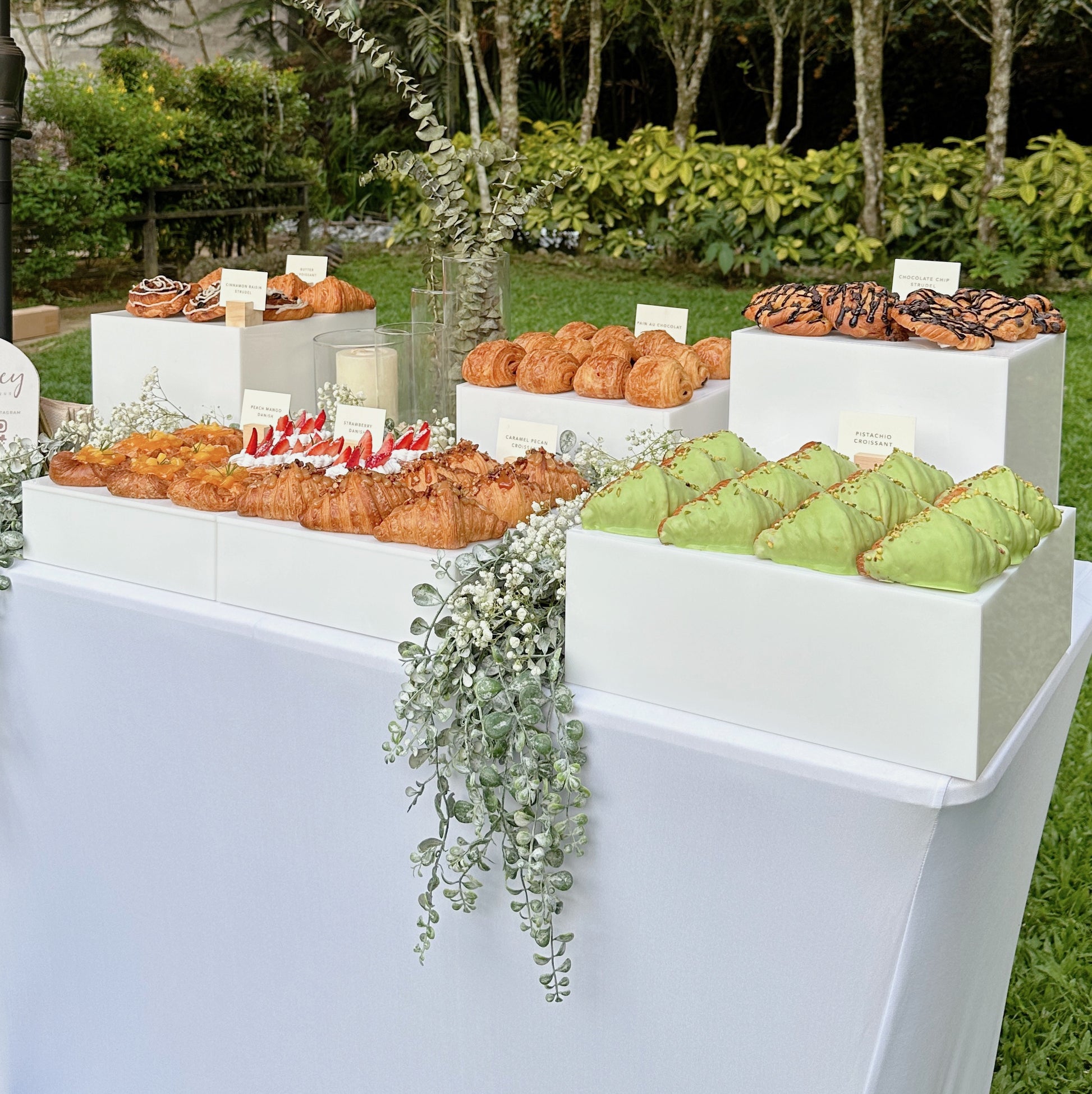 Display Setup Inclusions: Vase of fresh / faux flowers or foliage according to desired color palette / event motif. Props and in-theme decor, white acrylic platforms. Free delivery / setup within Metro Manila or Tagaytay areas. Setup is good for two (2) hours, inclusive of server(s) as applicable. Extension per hour will be charged accordingly.