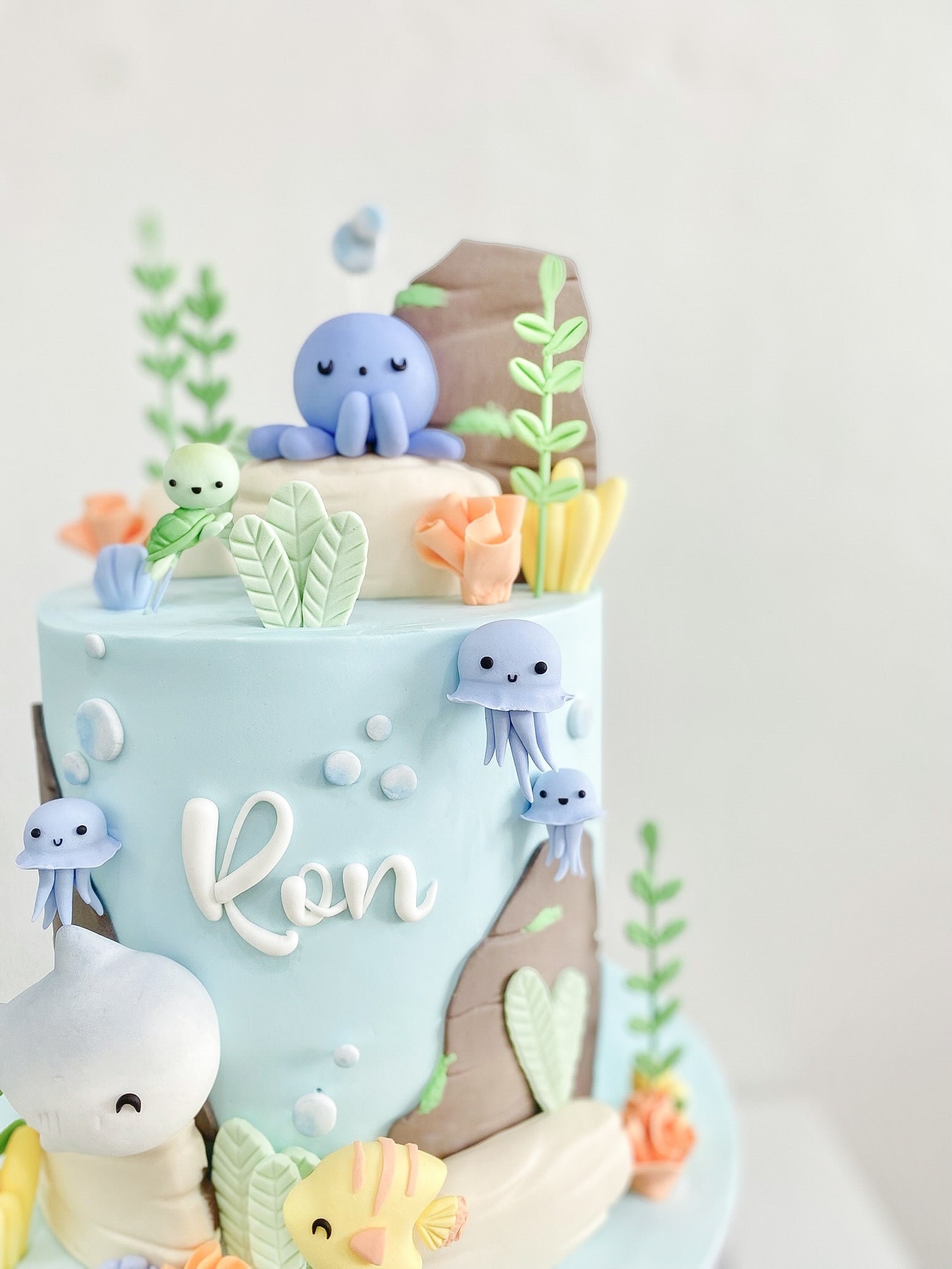 Cake Design: Pastel yellow body with several fruit toppers, celebrant's name and number element in fondant. Add-on designs or details may be charged at cost. Please email us for any additional customization requests.